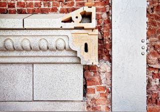 The restoration of the terra cotta on the addition was one of the largest terra-cotta projects in the country, involving both extensive repair and replacement. All areas were considered to be in fair to poor condition. The team had found extensive glaze failure, open and deteriorated joints, soiling, corroding ferrous metal anchors, and vertical crack systems in the ashlar piers. “The failing roof and façade was becoming a life safety issue,” says Verhosek, “especially above the cornice. Pieces of damaged slate tile and terra cotta were spalling and disengaging from the building. Part of our charge was to determine what could be saved and what could be replaced.”