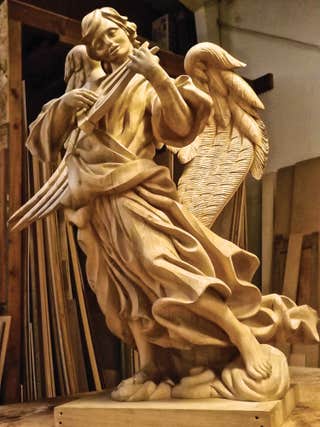 This angel is one of many religious pieces carved by Agrell Architectural Carving. Courtesy of Agrell